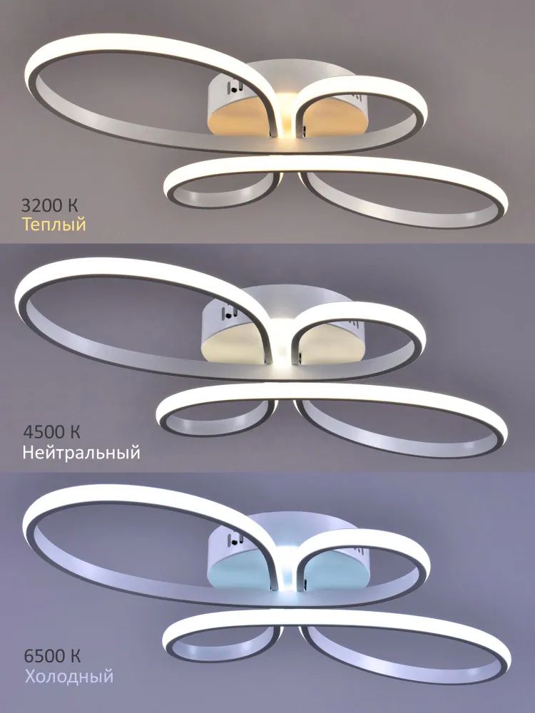 Светильник светодиодный потолочный "Россвет" РС23218 "Камертон" (98 Вт, 4400 лм, 3200 - 4500 - 6500 К), белый