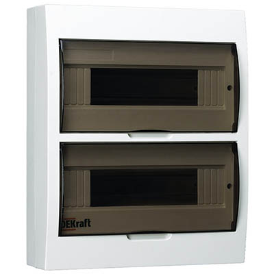 Корпус распределительный навесной ЩРН-П-24 DEKraft 31013DEK (24 модуля, прозрачные двери, IP41), белый