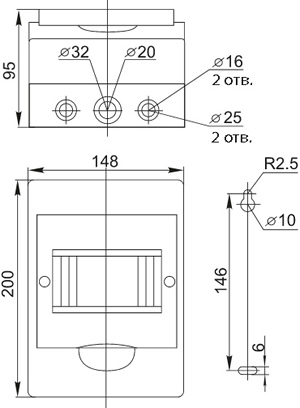 | Наличие шин N, PE | 2 шины (по 3 отверстия) |