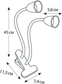 Светильник Uniel TLI на прищепке с 2 патронами Е27 на гибких ножках предназначен для использования с фитолампами.