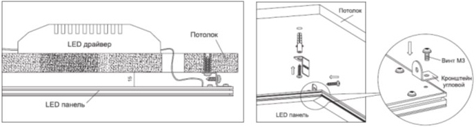 На рисунке изображена установка панели и драйвера при накладном монтаже.